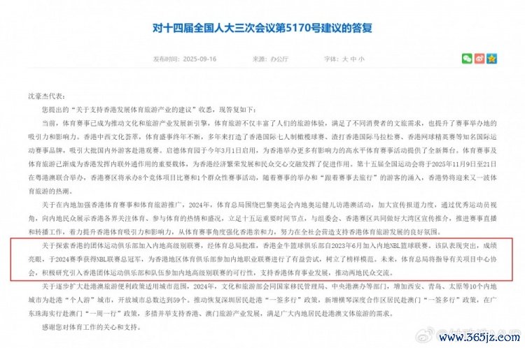 体育总局对该建议进行了回复:‘经体育总局批准,香港金牛篮球赛 俱乐部自2023年6月加入内地NBL篮球赛 职业联赛 。该队表现突出,成绩亮眼,马赛于2024赛季获得NBL职业联赛 总第一名 , 田径新闻为香港地区体育俱乐部参加内地职业职业联赛 进行了有益尝试, AC米兰直播吧树立了榜样模范。未来,体育总局将指导有关项目中心协会,积极研究引入香港团体运动活动 俱乐部和队伍参加内地高级别职业联赛 的可行性,支持香港体育事业进步 ,推动两地民众沟通 。’