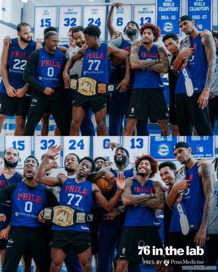 9月20日讯 今天,76人官方晒出了球队的练习 照,