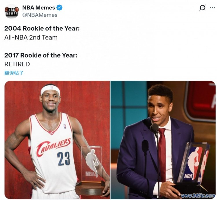 美媒:2004年最佳新秀詹姆斯还能二阵 2017年ROY布罗格登都退役了