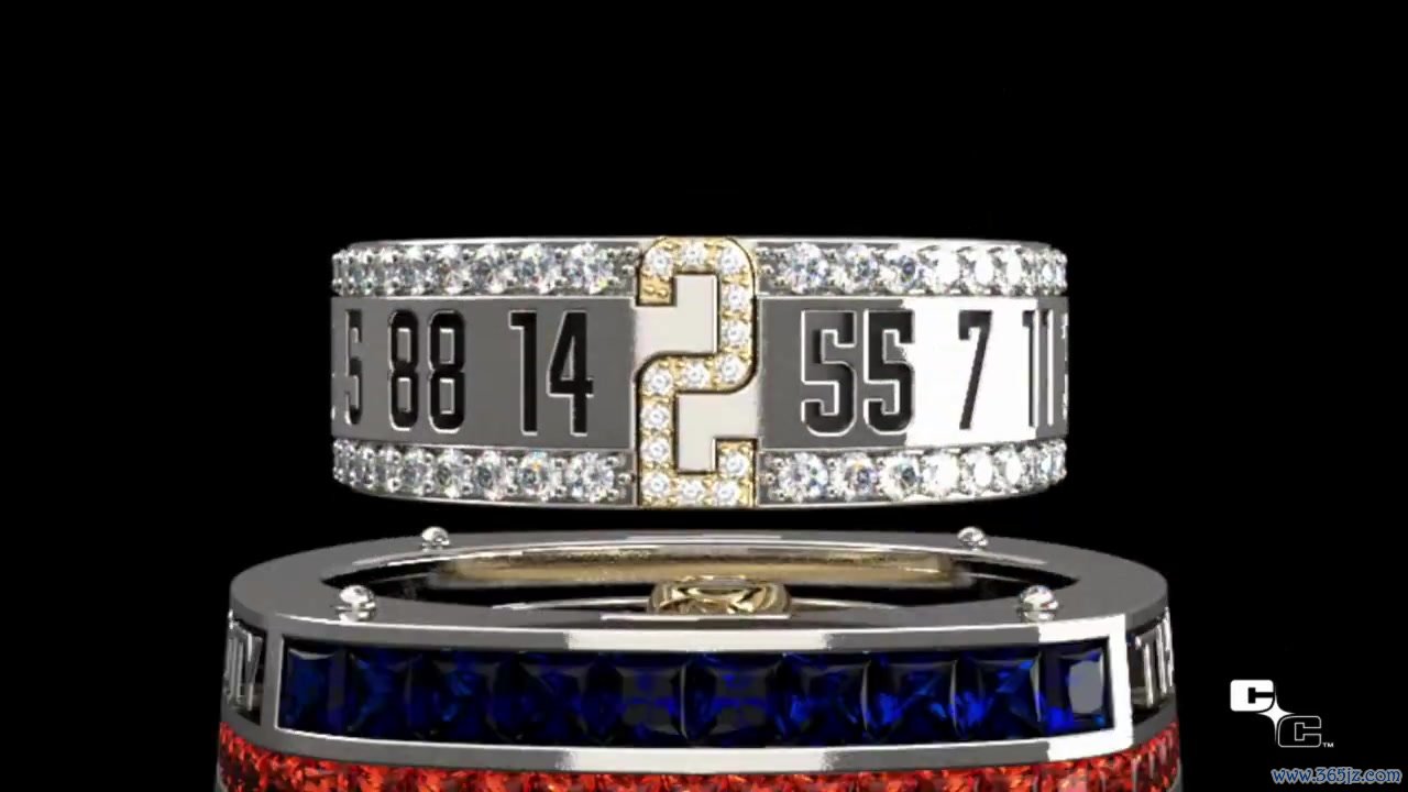 采用14K白金与黄金打造,马赛体育直播镶嵌蓝橙双色蓝宝石。每枚戒指均以钻石镶嵌球员号码。