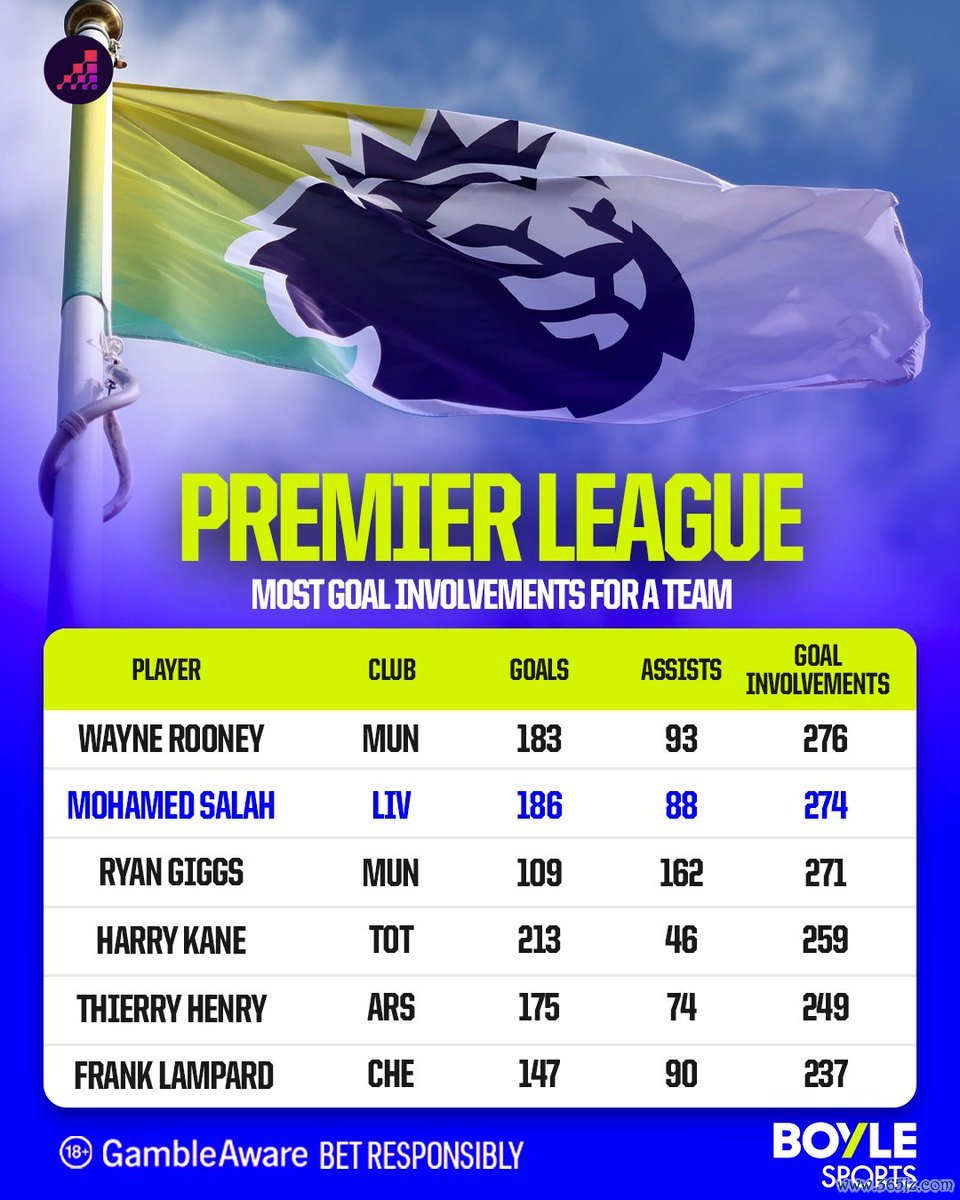 纪录在望, 萨拉赫距鲁尼单一俱乐部英超参与进球纪录仅差2球