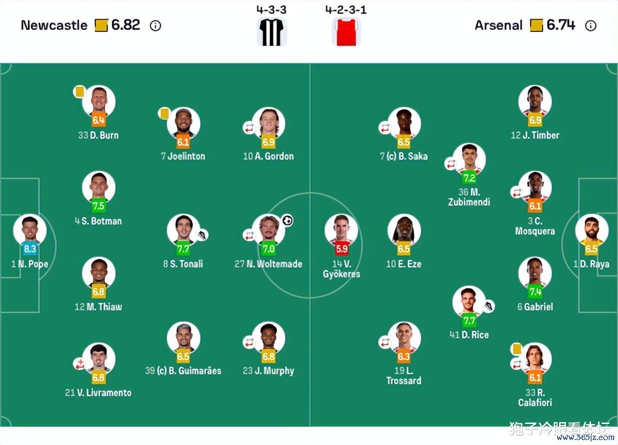 纽卡斯尔首发:1-波普、4-博特曼、12-佳夫、21-利夫拉门托(76’6-拉塞尔斯)、33-丹·伯恩、7-乔林顿、8-托纳利、39-吉马良斯、10-戈登(66’20-伊兰加)、23-雅各布·墨菲(66’2-特里皮尔)、27-沃尔特马德(66’18-奥苏拉)。