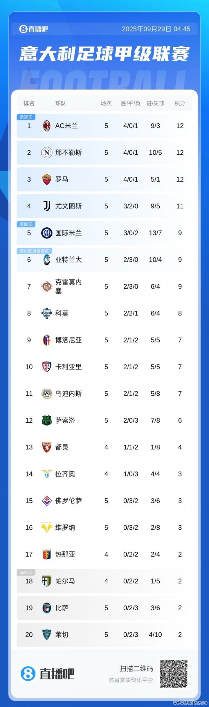 此役后米兰四连胜登顶英超官方app, AC米兰同样12分的还有那不勒斯和罗马。
