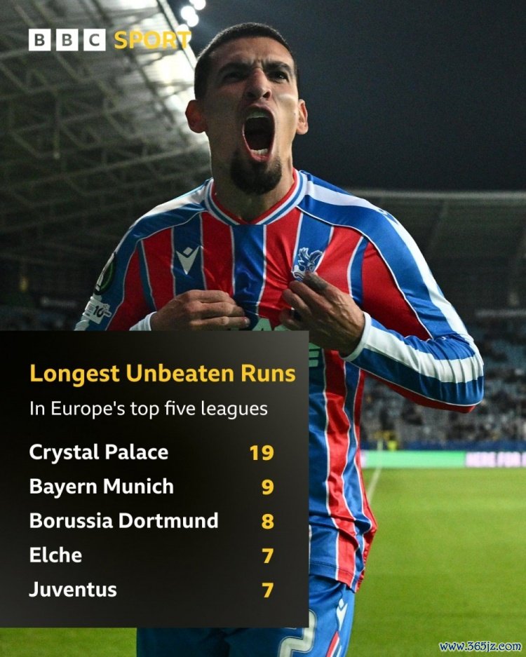 10月3日讯 BBC统计了目前五大联赛球队的不败场次,并列出榜单,马赛足球直播水晶宫19场居首, 田径新闻拜仁9场次席。