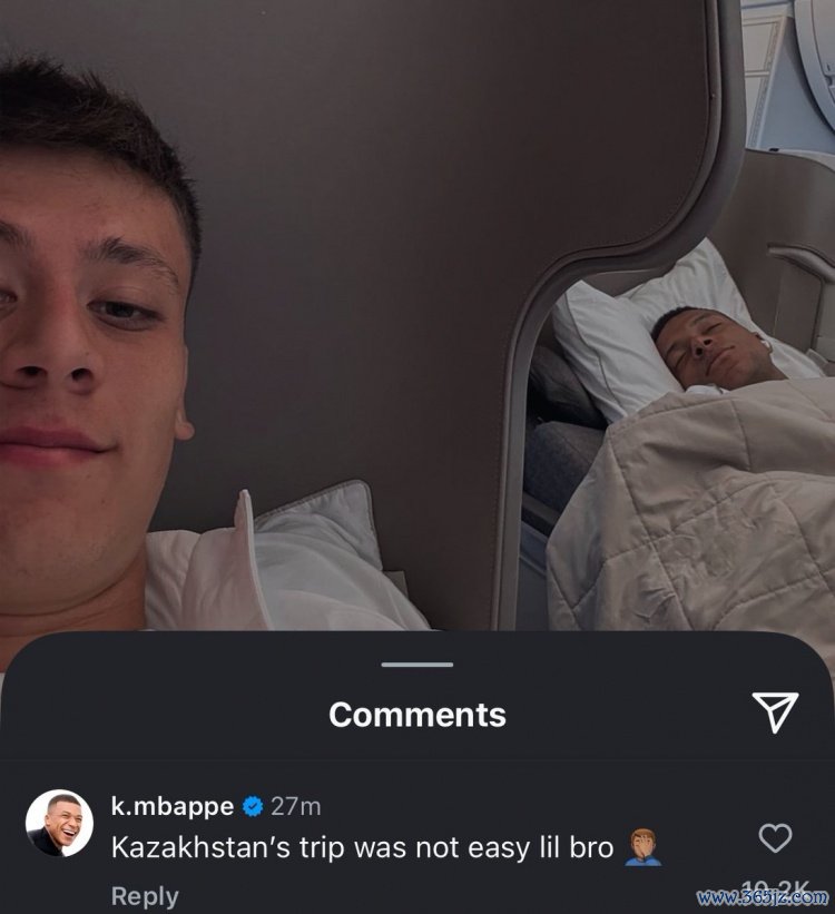 居勒尔晒姆巴佩入睡照,后者回复:这趟哈萨克斯坦之旅可不轻松啊