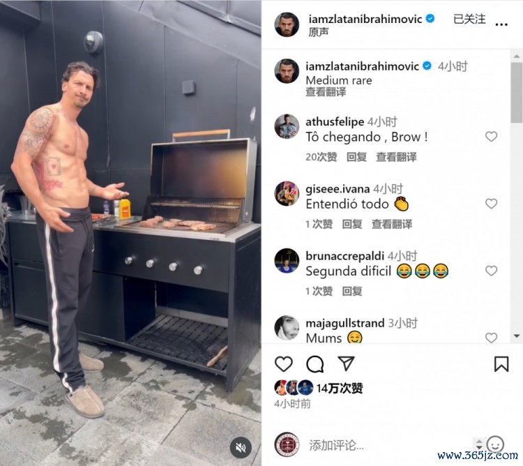 肌肉线条依然明显!44岁伊布晒赤裸上身烤肉视频:五分熟
