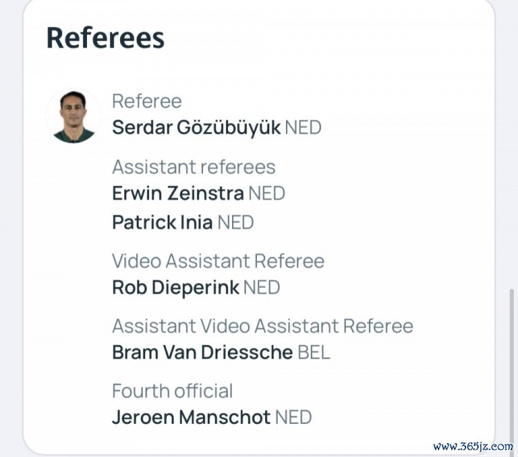 助理裁判:泽因斯特拉(荷兰)、因尼亚(荷兰)
