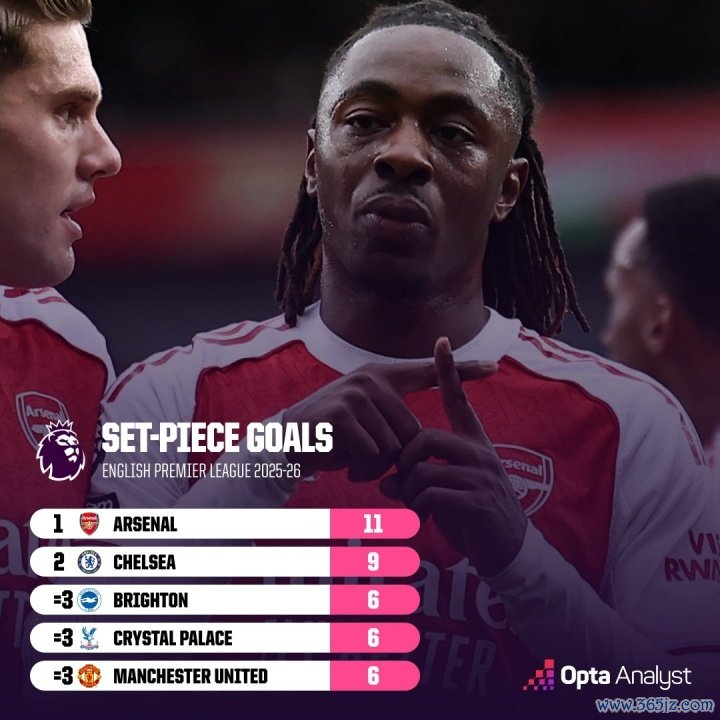 据opta数据统计, AC米兰英超直播本赛季阿森纳已通过定位球打入11粒进球,马赛位列英超第1。