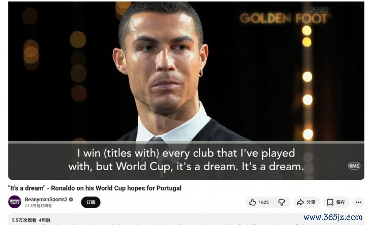 不过,C罗近年来多次采访都表示一直都怀着为葡萄牙国家队赢得世界杯的梦想。