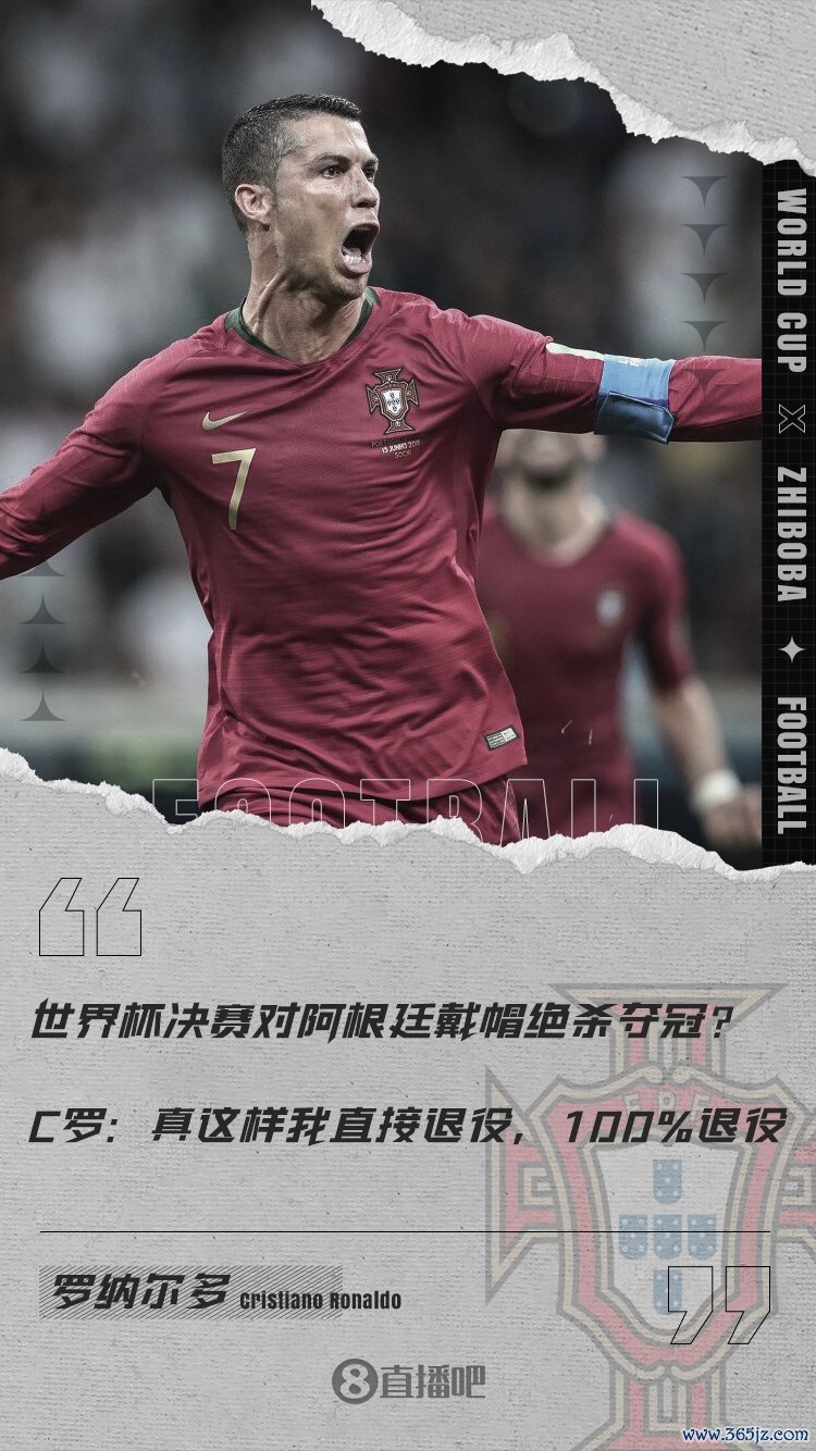 之后C罗还表示若世界杯决赛对阵阿根廷戴帽夺冠,100%退役。