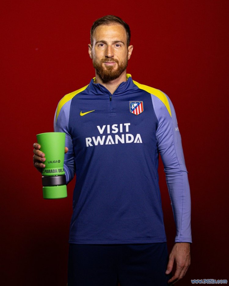 11月7日讯 西甲官方更新社媒动态,晒出马竞门将奥布拉克领取10月最佳扑救奖杯的照片。