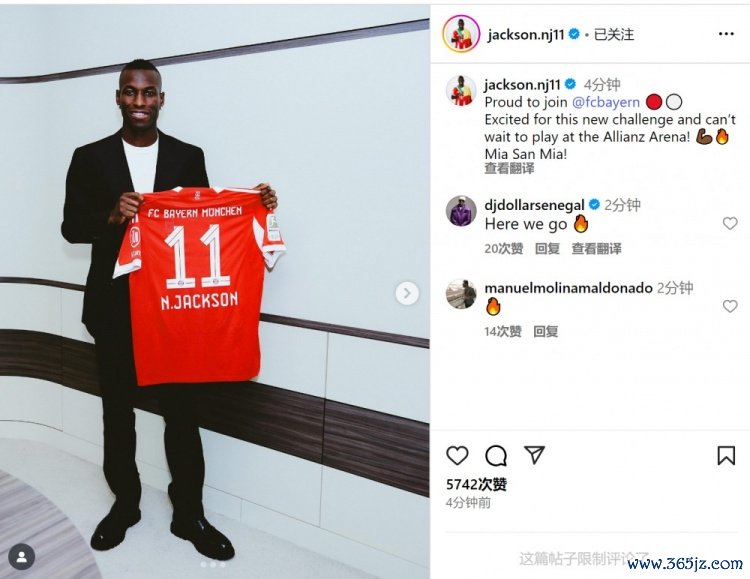 9月2日讯 切尔西前场球员杰克逊租借加盟拜仁,杰克逊社媒发文表达喜悦之情。