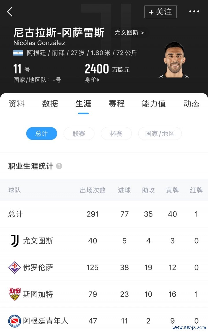 尼古拉斯-冈萨雷斯时年27岁,阿根廷前场球员。上赛季他为尤文出场35场,取得5粒得分 和4次助功 ,目前其德回转 价预估2400万欧