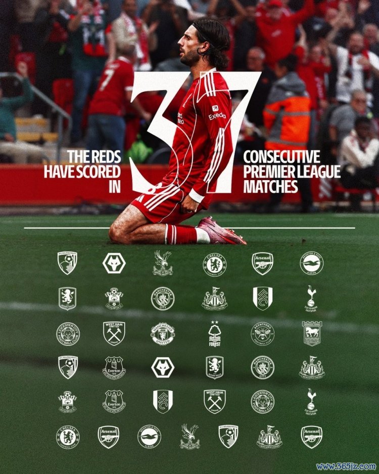 利物浦官推也晒出索博滑跪庆祝照, AC米兰并晒出最近37场英超对手的队标 ,马赛英超直播同时指出:“红军连续37场英超均能破门五洲新春2025目标价, 田径新闻这也是俱乐部的新记录 。”