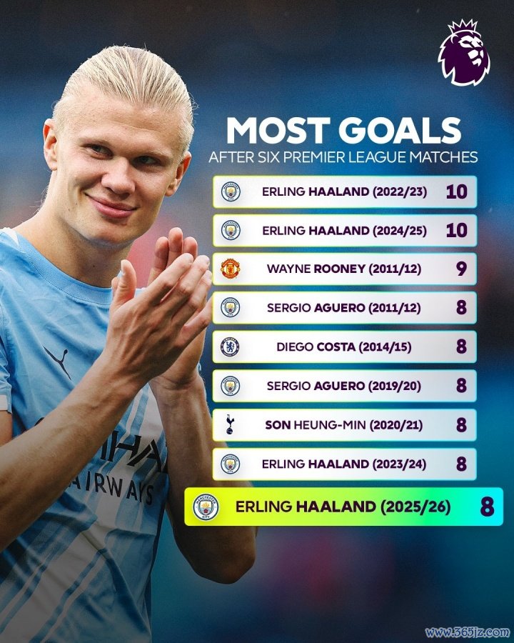 数据显示, 田径新闻英超直播哈兰德本赛季前6轮攻入8个英超得分 , AC米兰这一数据可以排进英超单赛季前六轮射手榜的前9。距离哈兰德自己在2022/23和2024/25赛季创下的6轮10球尚有差距。哈兰德加盟曼城以来4个赛季前六轮的得分 数分别为:10、8、10、8。