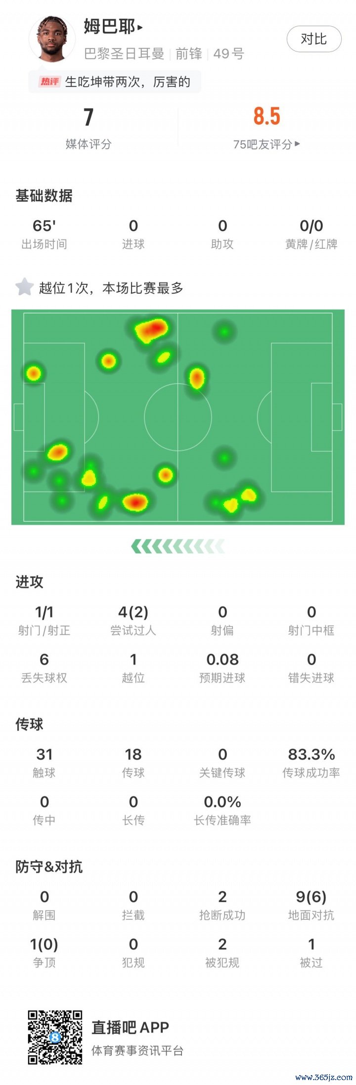 三人总身价合计8800万欧,不及亚马尔(2亿欧)的一半。身价最低的姆巴耶年仅17岁,在赛事 中生吃孔德。