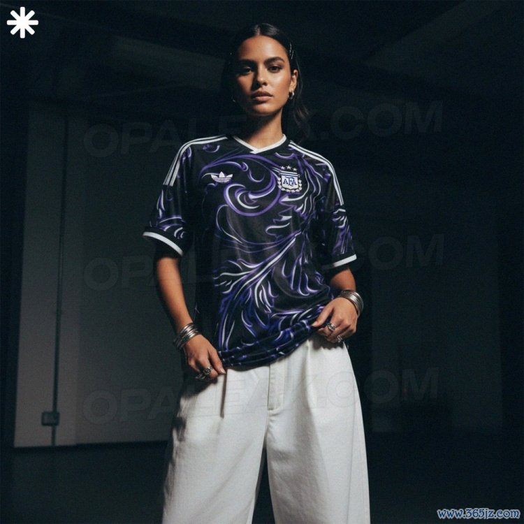 阿根廷2026年世界杯赛 客场应战 运动活动 服 以黑色为主色调,搭配白色标志和紫色, 田径新闻足球直播以及灵感来源于绘画的艺术图案。