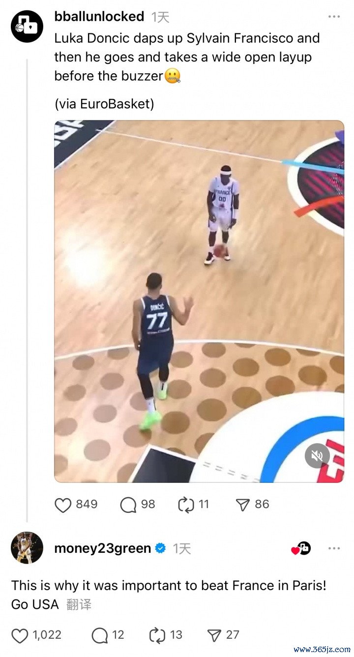 追梦在相关视频的下方评论写道:“这就是为什么在巴黎击败法国很重要!USA冲!”