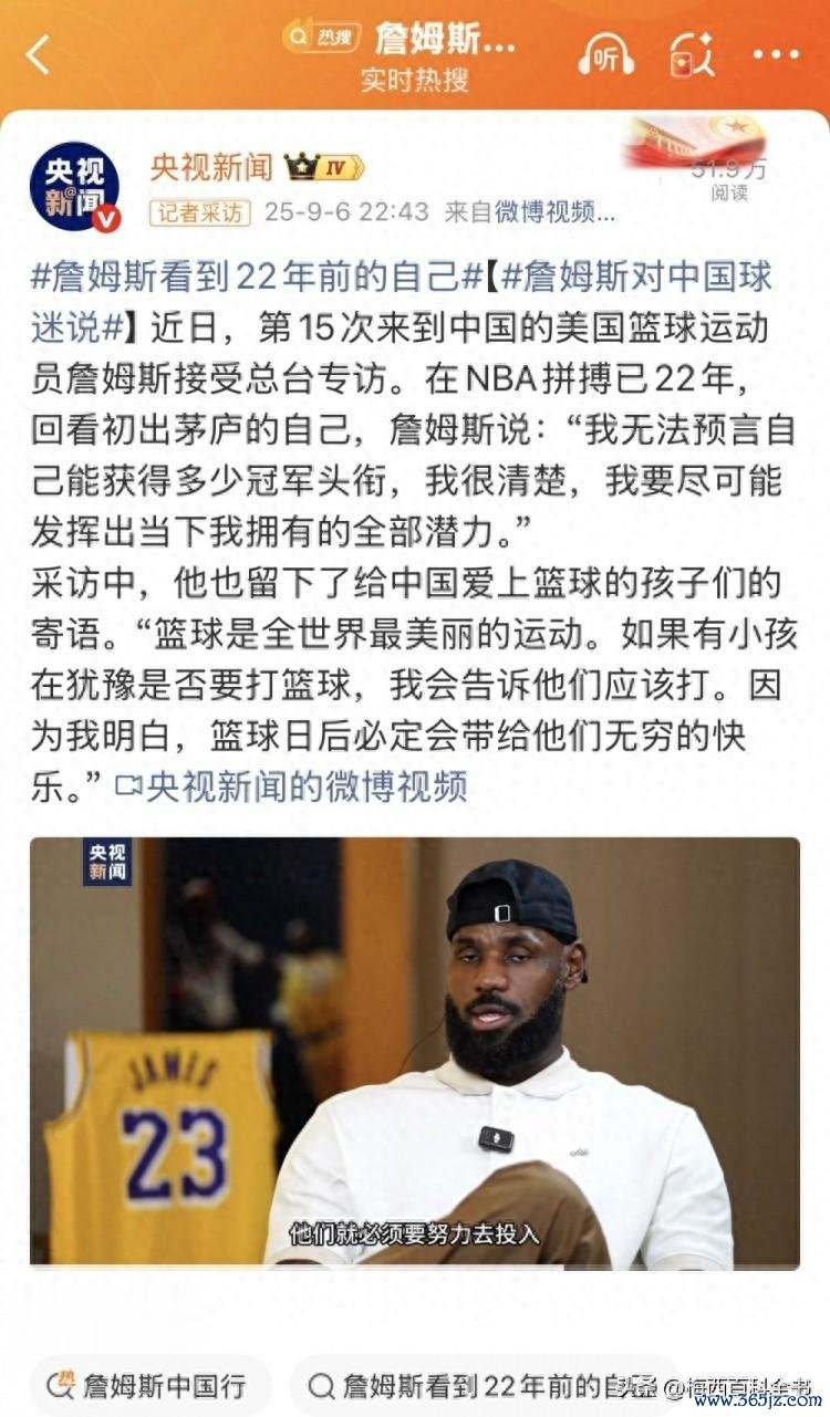 排面! 詹姆斯在中国接受央视采访! 上一个是梅西!