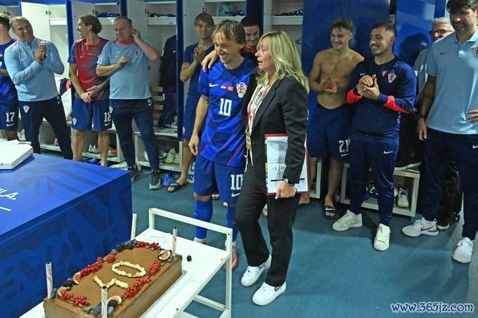 莫德里奇迎来40岁生日,马赛直播吧克罗地亚全队赛后在更衣室为这位传奇领队 庆生。