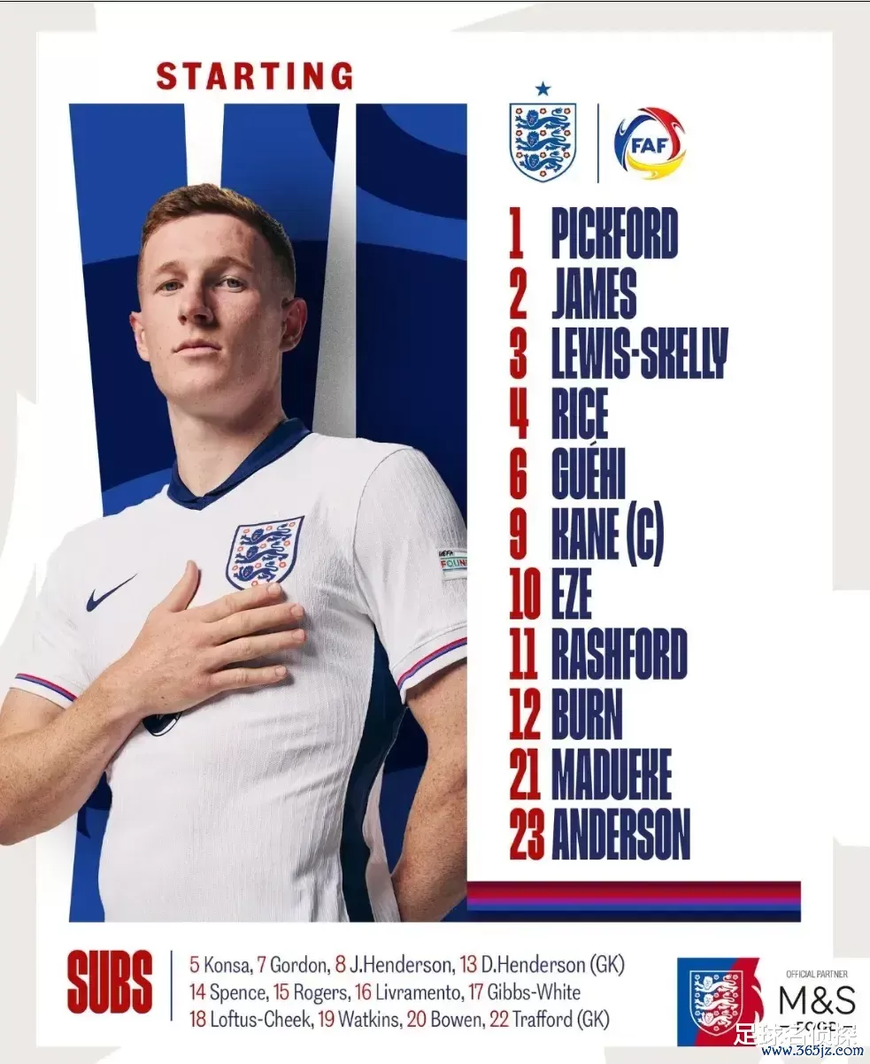赖斯、斯凯利、马杜埃凯和埃泽均杆位出战了英格兰2-0战胜安道尔的赛事 。