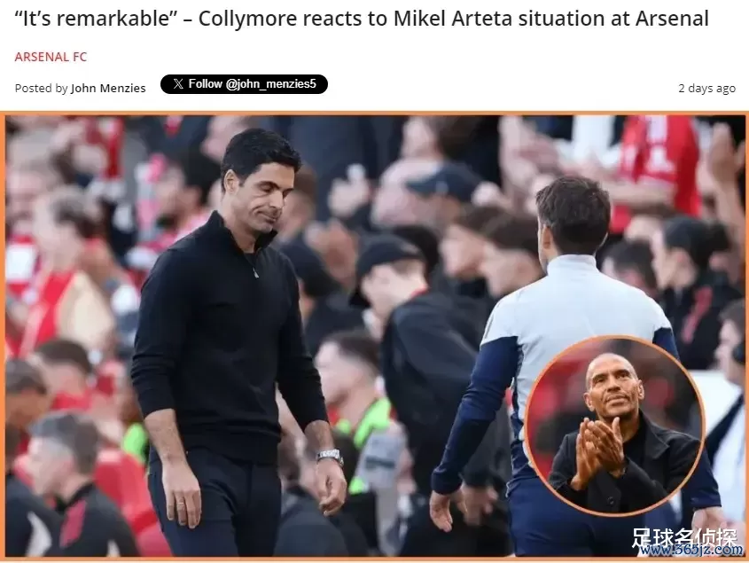 足坛名宿斯坦-科利莫尔在洞察越位违例 的专栏中表示,阿尔特塔本赛季必须感受到巨大压力才行。