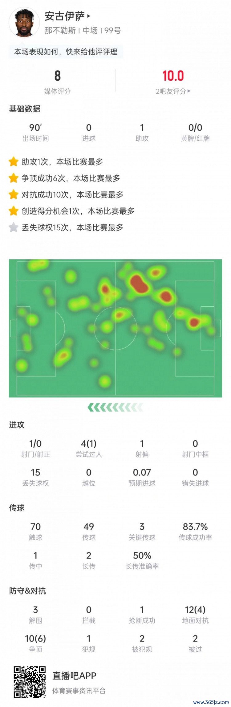 造点+助功 ! 安古伊萨当选那不勒斯vs佛罗伦萨全场最佳球员