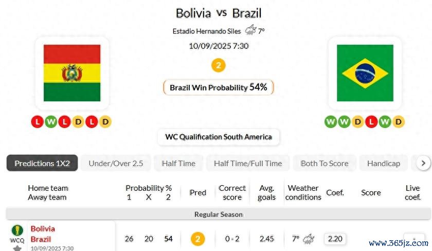 魔鬼主场作战 被攻陷? 海外情报预测: 玻利维亚0-2巴西