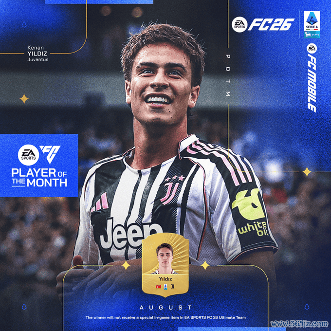 尤文图斯球员凯南·伊尔迪兹荣获2025年8月的EASPORTSFC月度最佳球员奖。奖杯的颁发仪式将于当地时间2025年9月13日(星期六)18:00,在都灵“安联运动活动 场 ”举行的尤文图斯vs国际米兰赛事 开始前进行。