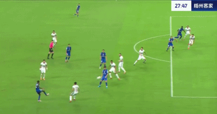 赛事 的第27分钟,马纳法右路挑传,吴曦危险区域 内顺势挑射破门,2比0!