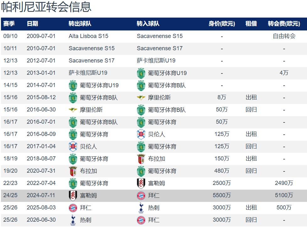 热刺已经于本周一官宣从拜仁租借30岁的葡萄牙国脚级后腰帕利尼亚。据德国媒体《图片报》跟进报道这笔交易的细节: